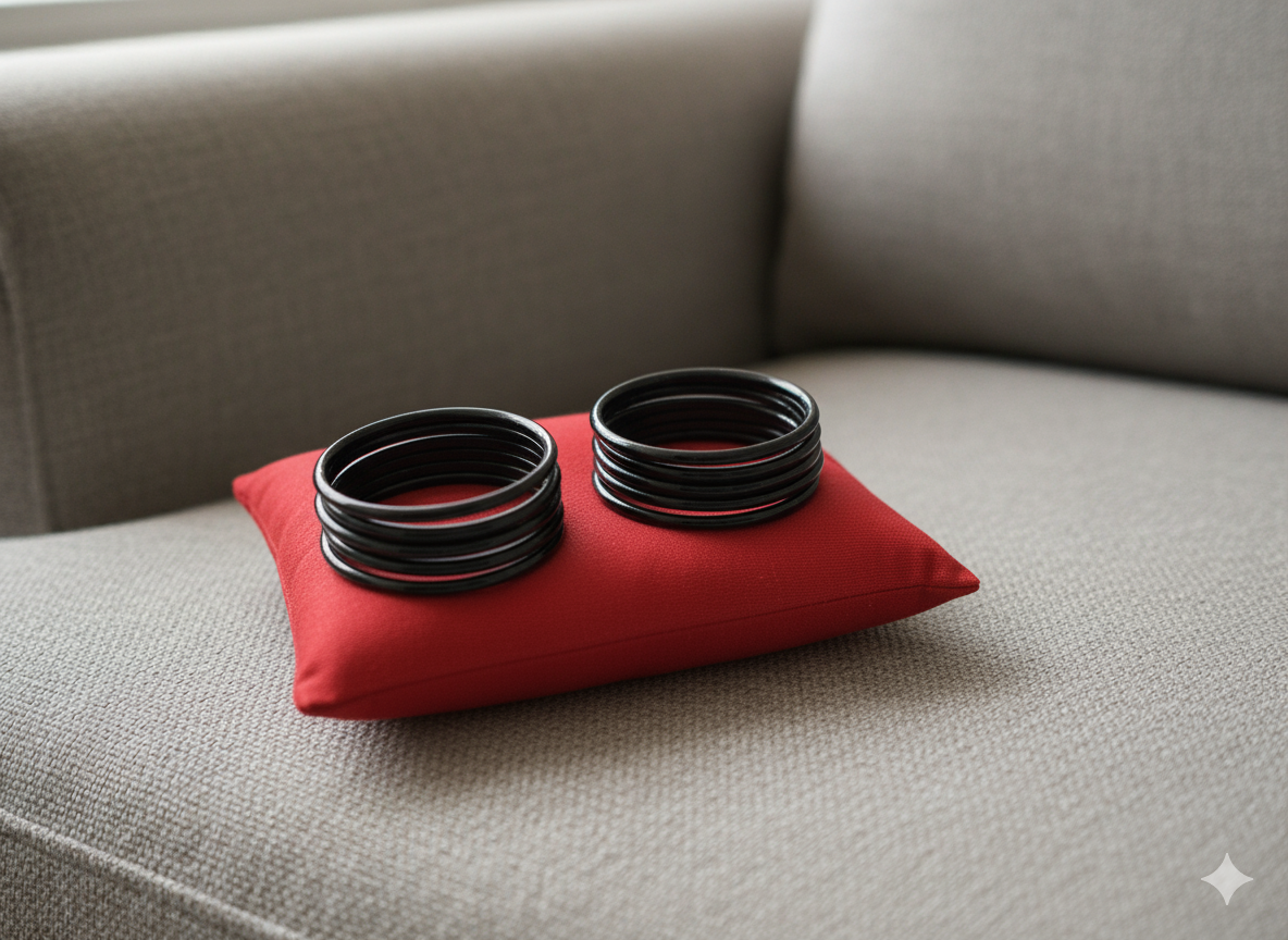 Handcrafted valayal infused with vasambu aroma—believed to soothe the baby and support peaceful sleep.