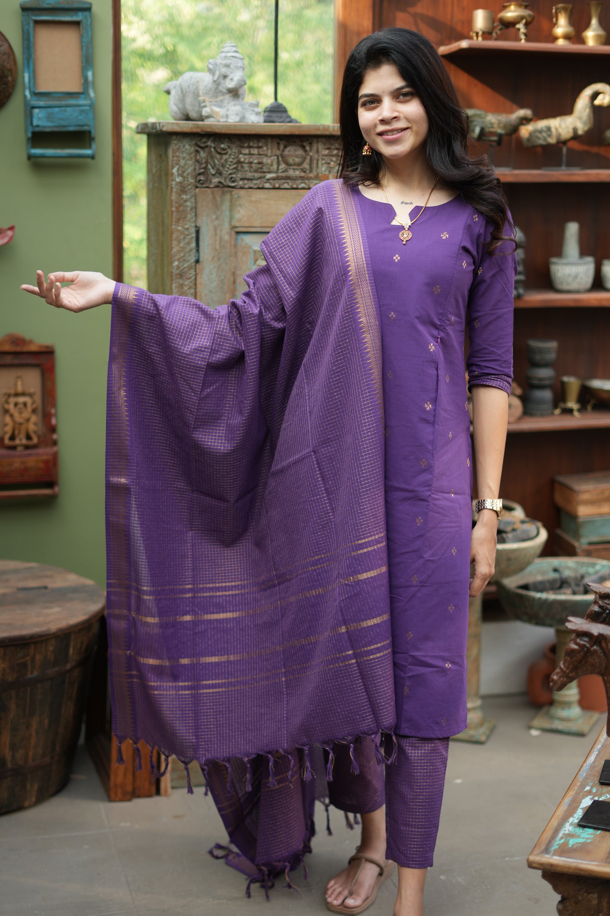 🟣 Matching dupatta included